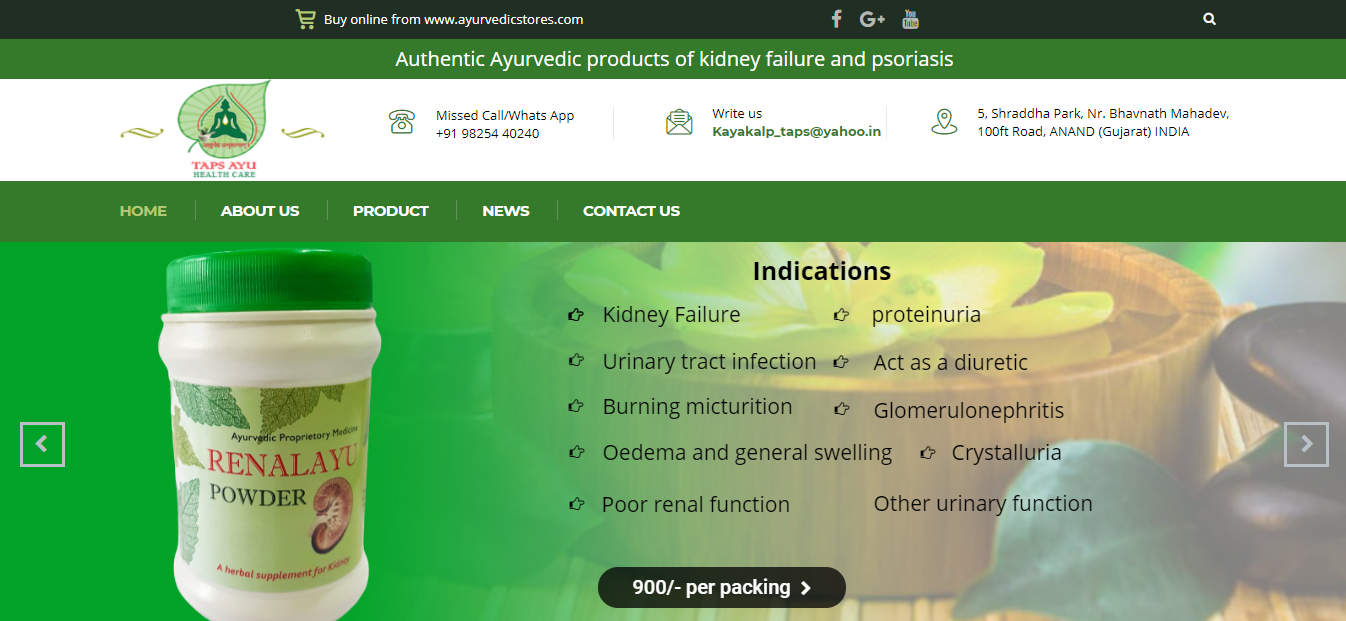 Taps Ayu Health Care is research base herbal medicine manufacture com­pany. It is synonym of quality, purity and transparency. As it is concerned with Ayurveda company has its own ethos, without deviating from traditional values of ayurveda. Our remedies are our effort to change ancient ayurveda medicines into “Modern standardized ayurveda”.